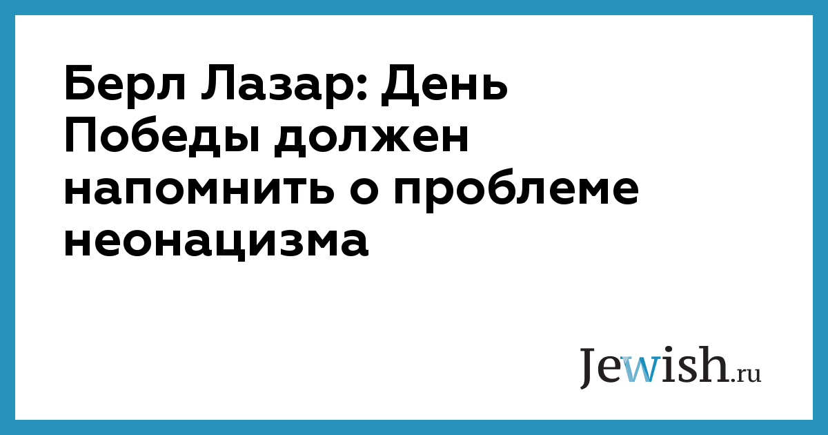 Главный раввин России Берл Лазар считает, что праздник Победы должен стать поводом для размышлений о недопустимости неонацизма.