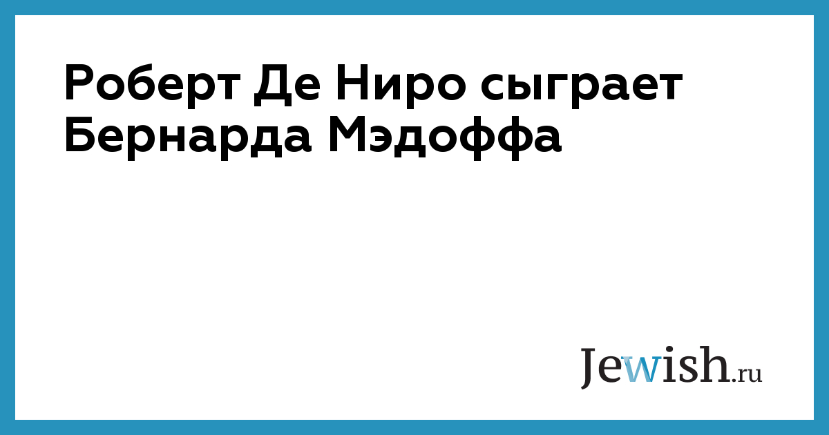 Роберт Де Ниро сыграет Бернарда Мэдоффа
