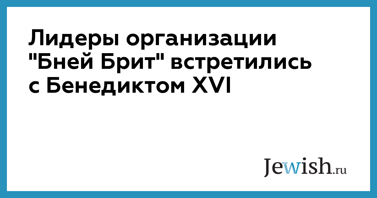 Лидеры организации "Бней Брит" встретились с Бенедиктом XVI