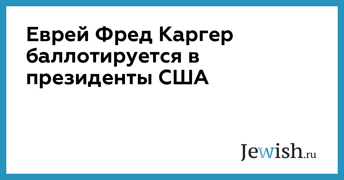 Еврей Фред Каргер баллотируется в президенты США