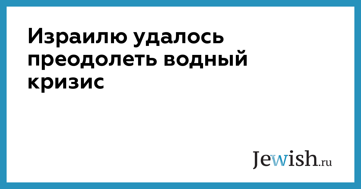Глава Управления водных ресурсов профессор Ури Шани заявил, что возросшая сознательность населения и значительные дожди, прошедшие на территории страны в осенне-зимний период, помогли преодолеть тяжелейший водный кризис в истории Израиля.
