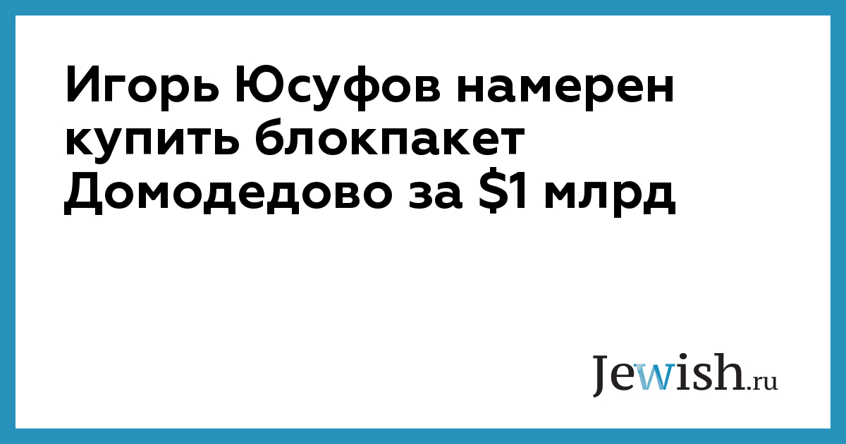 Бывший спецпредставитель президента Росии Игорь Юсуфов хочет войти в капитал аэропорта Домодедово: он намерен купить блокпакет примерно за $1 млрд, и сейчас ведет об этом переговоры с председателем наблюдательного совета аэропорта Валерием Коганом.