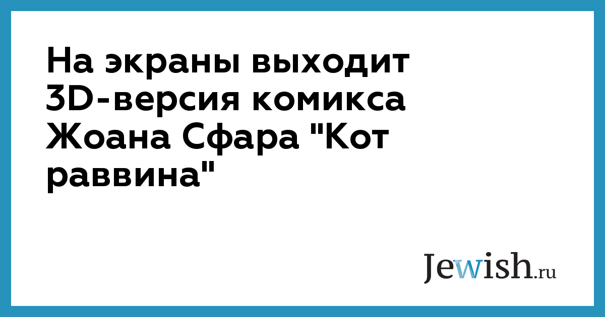 1 июня на экраны выйдет 3D-версия комикса "Кот раввина": автором анимационного фильма, так же, как и автором комикса, является Жоан Сфар, 38-летний французский еврей, уроженец Ниццы, мультипликатор, карикатурист, а также сценарист и режиссер, пишет Le Nouvel Observateur.