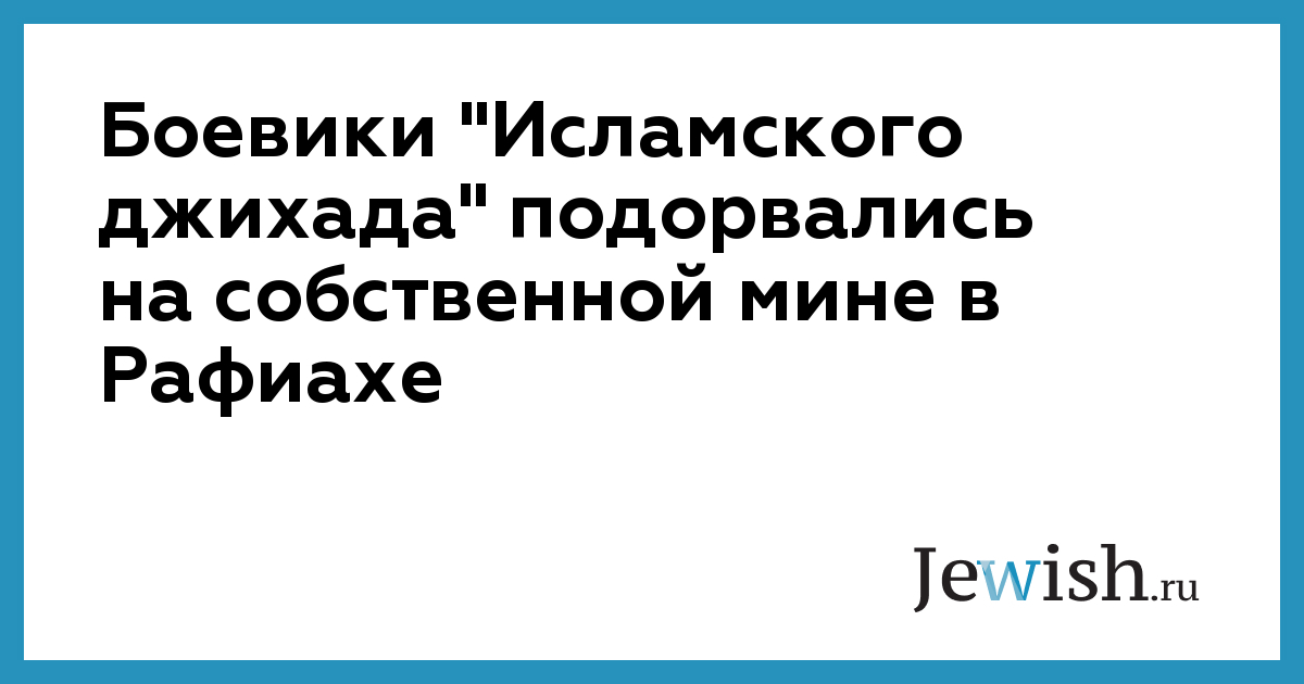 Боевики "Исламского джихада" подорвались на собственной мине в Рафиахе