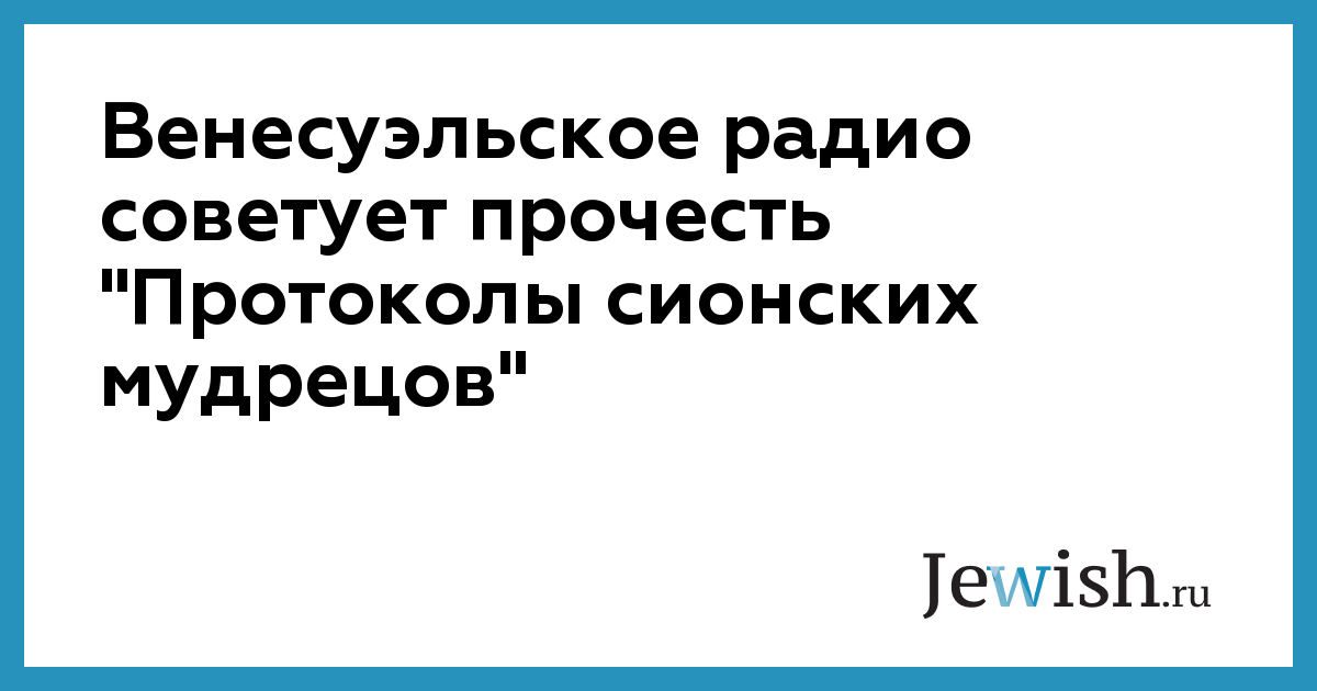 Самая большая в Венесуэле еврейская ассоциация защиты выступила с протестом в адрес правительства в связи с выходом на государственной радиостанции передачи, в которой было высказано положительное отношение к антисемитским в своей основе "Протоколам сионских мудрецов", сообщает JTA.