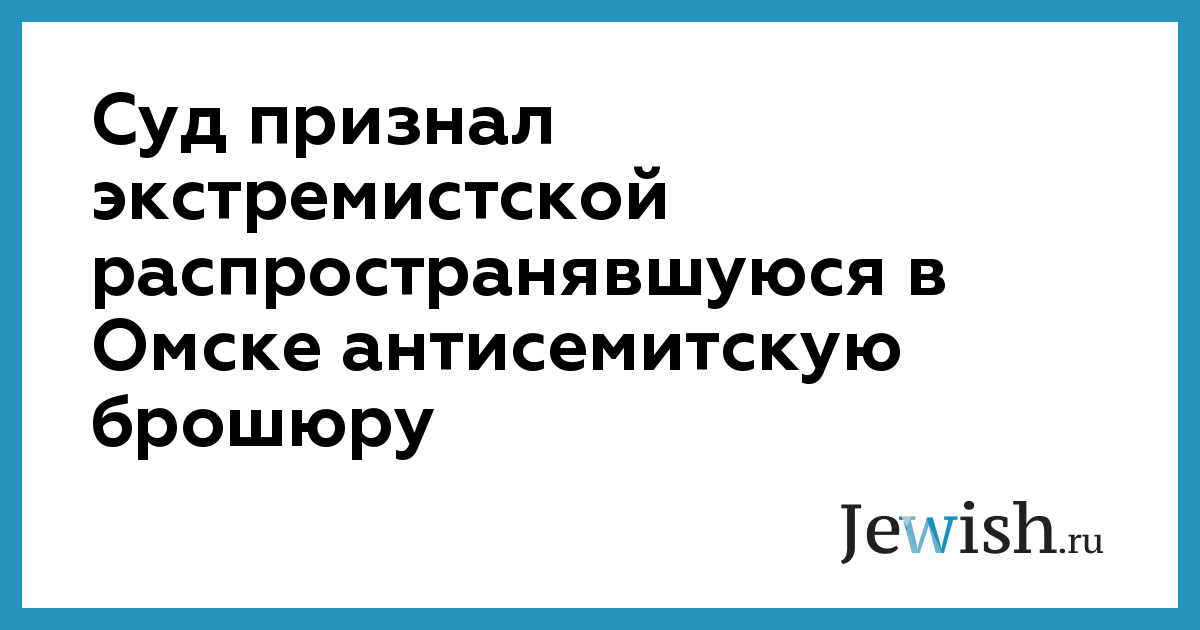 Суд признал экстремистской распространявшуюся в Омске антисемитскую брошюру