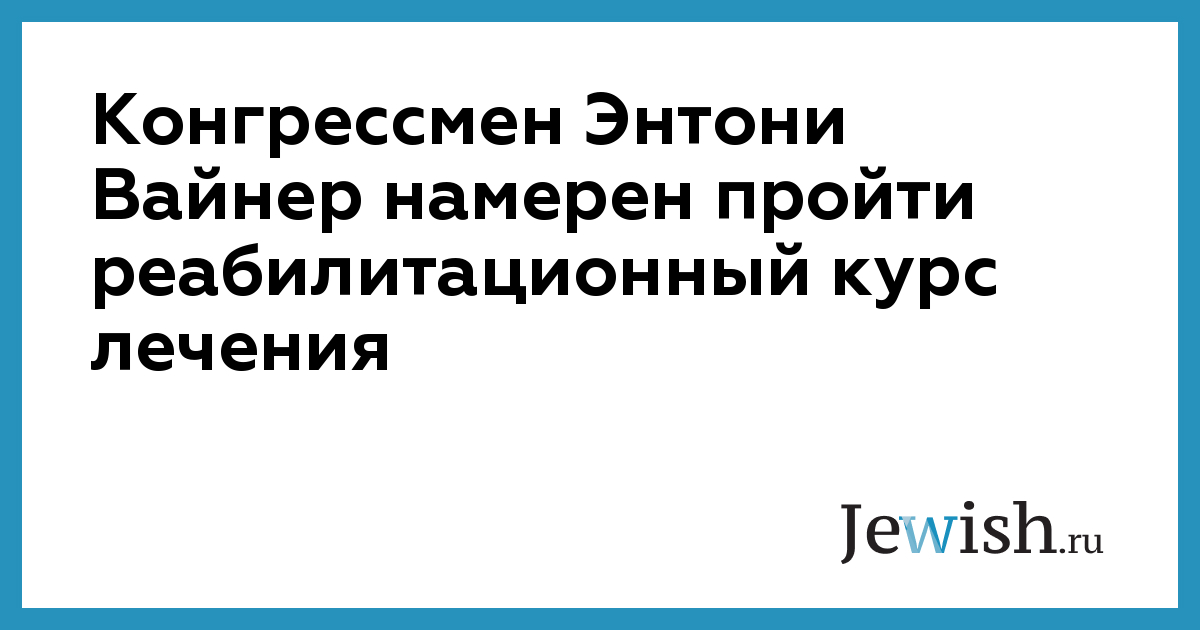Конгрессмен Энтони Вайнер намерен пройти реабилитационный курс лечения