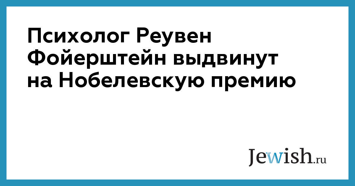 90-летнего израильского профессора Реувена Фойерштейна, специалиста по когнитивной психологии, международная инициативная группа выдвинула на Нобелевскую премию мира. Среди тех, кто поддержал кандидатуру израильтянина, шейх из Хеврона, профессура из европейских и арабских стран.
