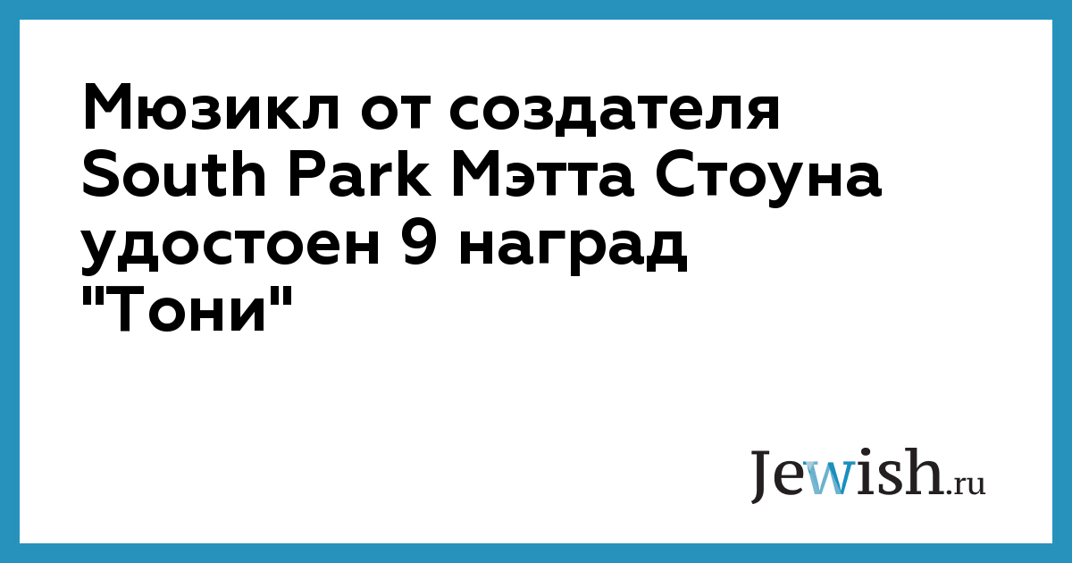 Мюзикл от создателя South Park Мэтта Стоуна удостоен 9 наград "Тони"