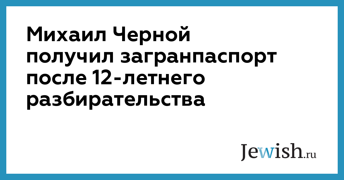 Бизнесмен Михаил Черной получил обычный заграничный паспорт после 12-летнего ожидания, сообщает 14 июня Walla!. Соответствующее решение приняли МВД и прокуратура в ответ на требование бизнесмена.