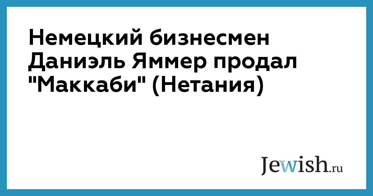 Немецкий бизнесмен Даниэль Яммер продал "Маккаби" (Нетания)