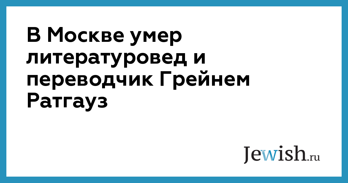 В ночь с воскресенья, 26 июня, на понедельник, 27 июня, в Москве на 77-м году жизни после тяжелой болезни умер литературовед и переводчик с немецкого языка Грейнем Ратгауз.