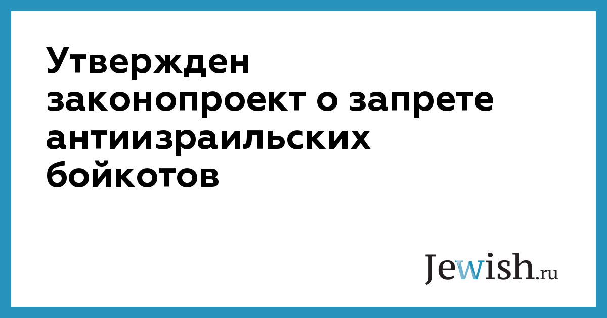 Утвержден законопроект о запрете антиизраильских бойкотов