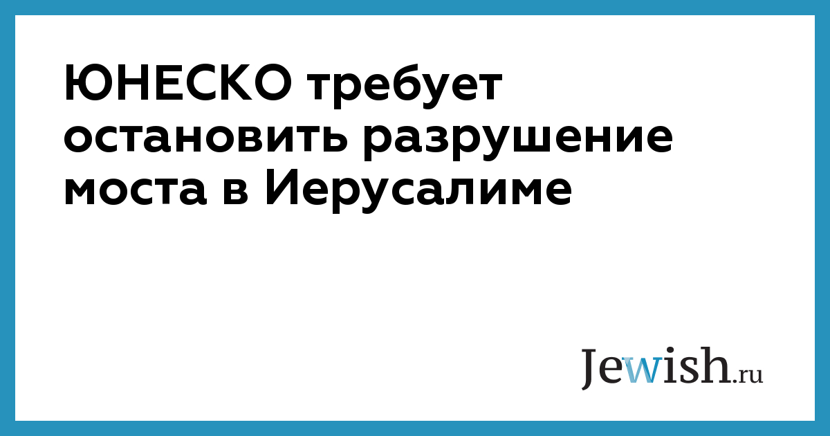 Комитет всемирного наследия ЮНЕСКО поддержал петицию Иордании и принял антиизраильскую резолюцию по поводу археологических раскопок у ворот Муграби в Старом городе Иерусалима, сообщает Ynet. ЮНЕСКО требует немедленно остановить все работы по разрушению моста у ворот Муграби, который соединяет Стену Плача и Храмовую гору в Иерусалиме.