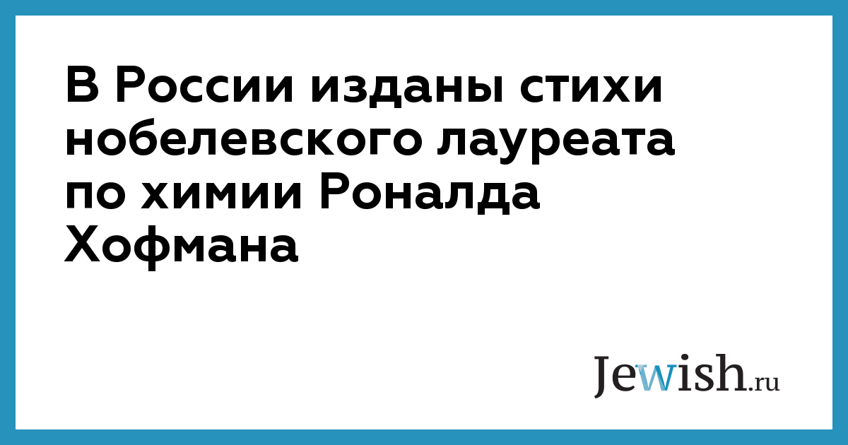 В России изданы стихи нобелевского лауреата по химии Роналда Хофмана