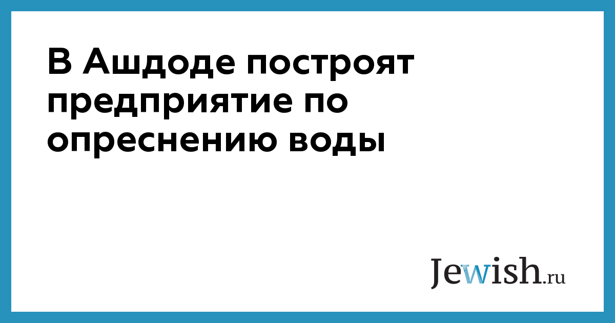 В Ашдоде построят предприятие по опреснению воды