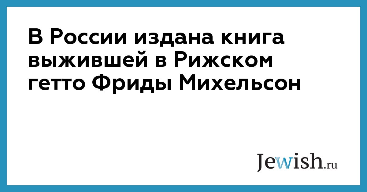 Книга воспоминаний Фриды Михельсонвпервые издана в Израиле в 1973 году. В США на английском языке она вышла в 1979-м. В Латвии на русском языке книга издавалась в 2005-м.