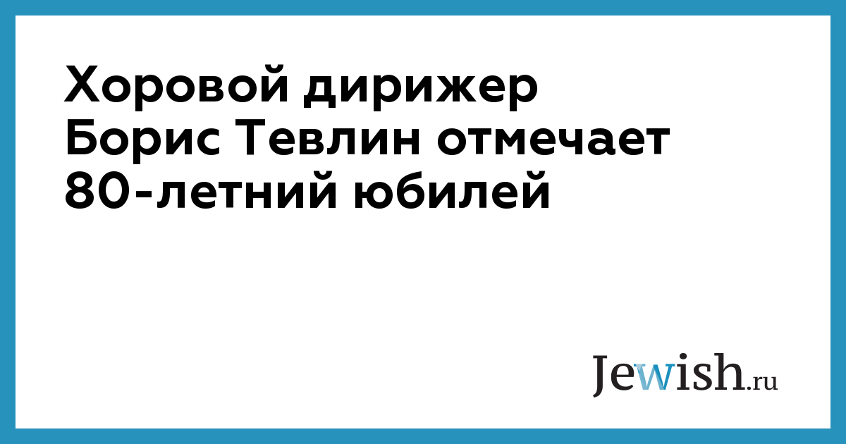 80-летний юбилей отмечает сегодня прославленный хоровой дирижер, народный артист России Борис Тевлин. Со знаменательной датой его поздравил профессор Александр Соколов — ректор Московской консерватории, с которой связана вся творческая жизнь мастера.