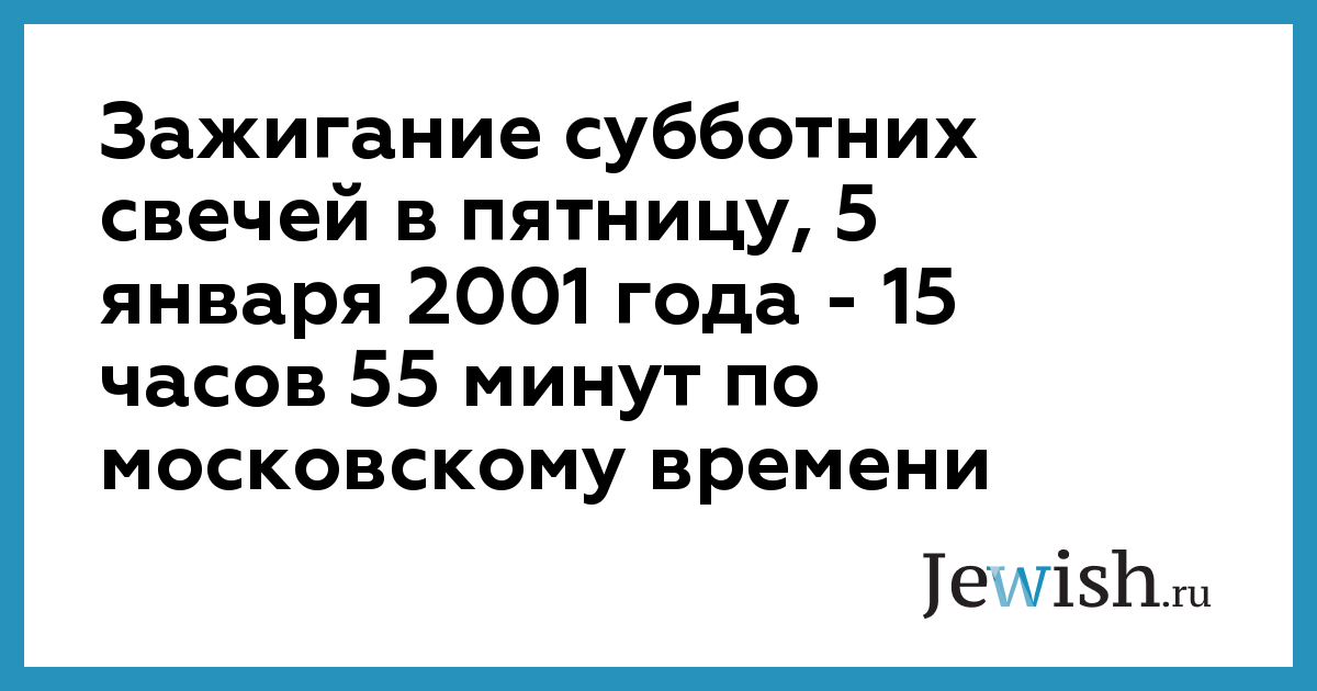 Зажигание субботних свечей в пятницу, 5 января 2001 года — 15 часов 55 минут по московскому времени