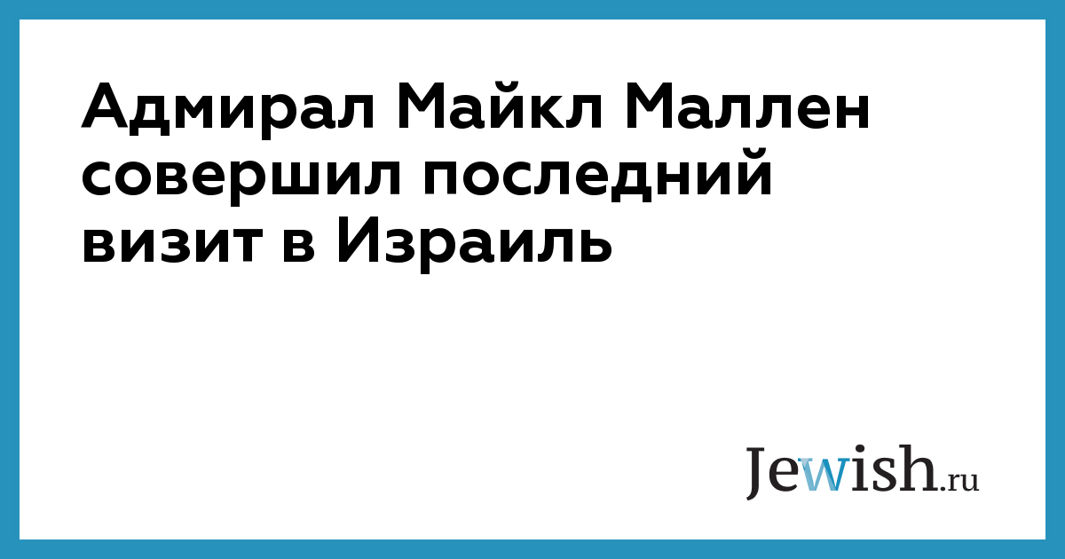 Маллен заканчивает свою каденцию в сентябре этого года. Это его шестой и последний рабочий визит в Израиль. В свой прошлый визит весной этого года Маллен принимал участие в церемонии смены начальника генштаба ЦАХАЛа, отдав дань уважения уходившему в отставку Габи Ашкенази, с которым его связывает личная дружба.