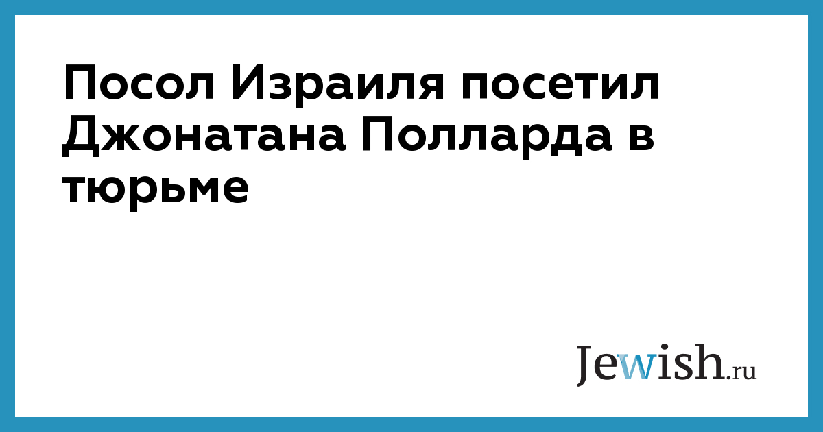 Посол Израиля посетил Джонатана Полларда в тюрьме