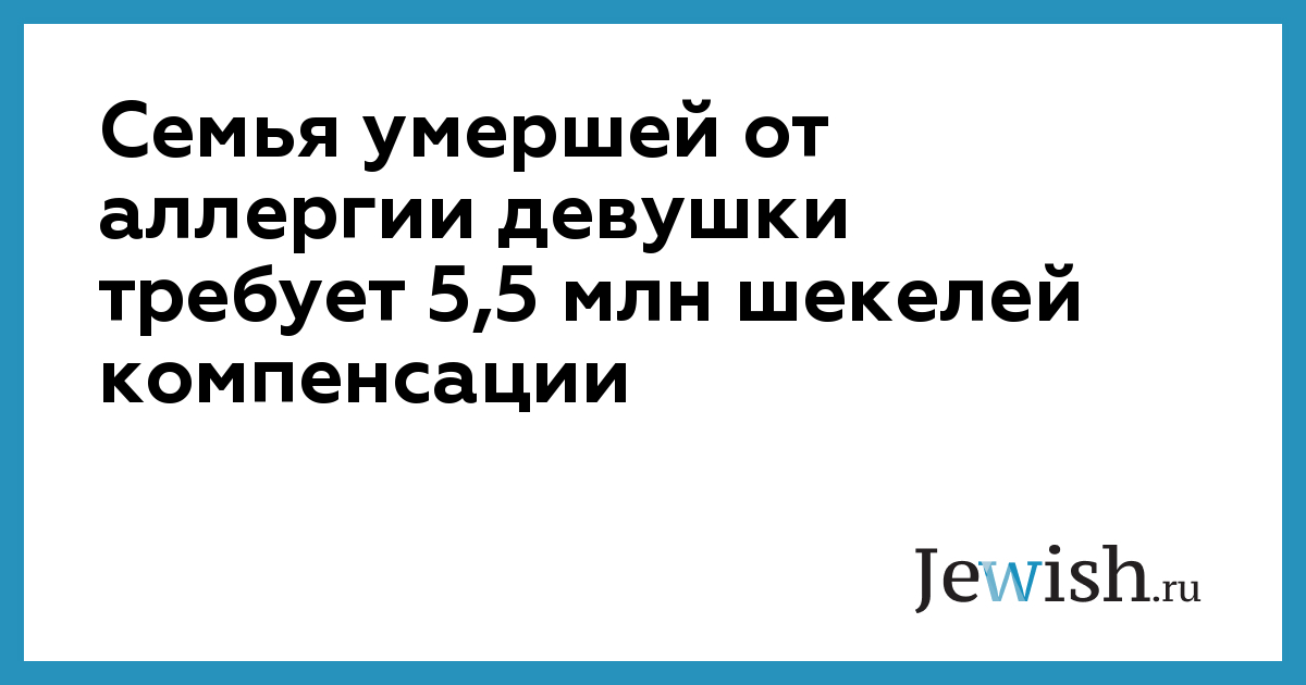 Семья умершей от аллергии девушки требует 5,5 млн шекелей компенсации