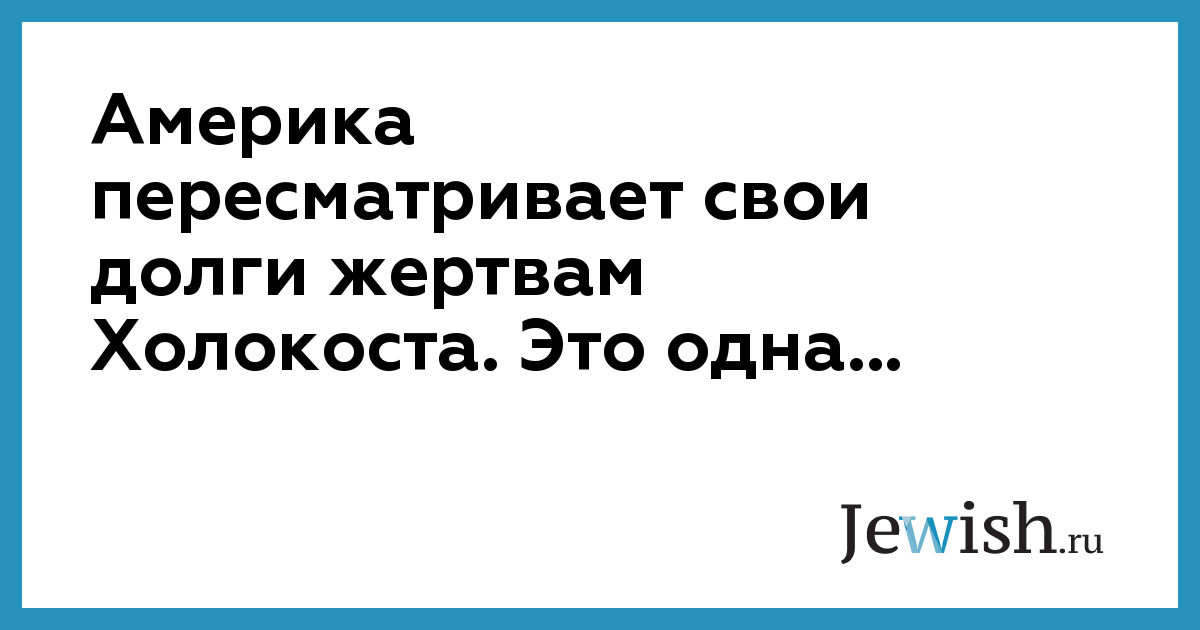 Америка пересматривает свои долги жертвам Холокоста. Это одна...