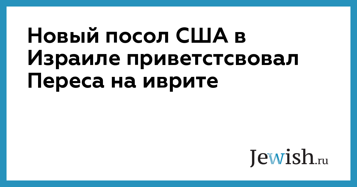 Новый посол США в Израиле приветстсвовал Переса на иврите