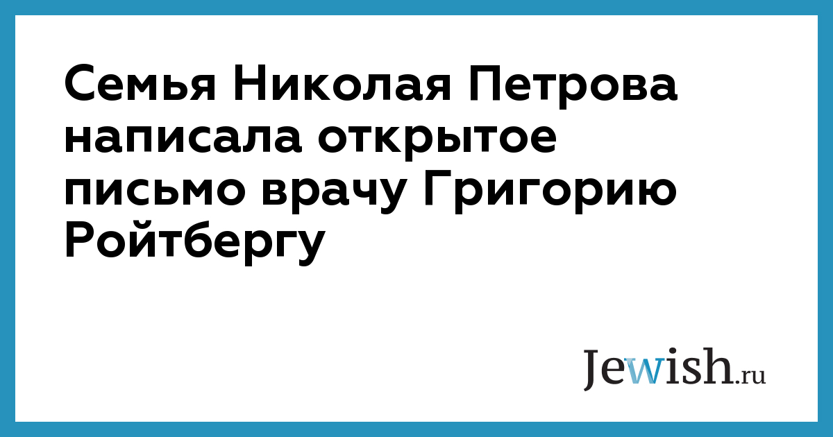 Семья Николая Петрова написала открытое письмо врачу Григорию Ройтбергу