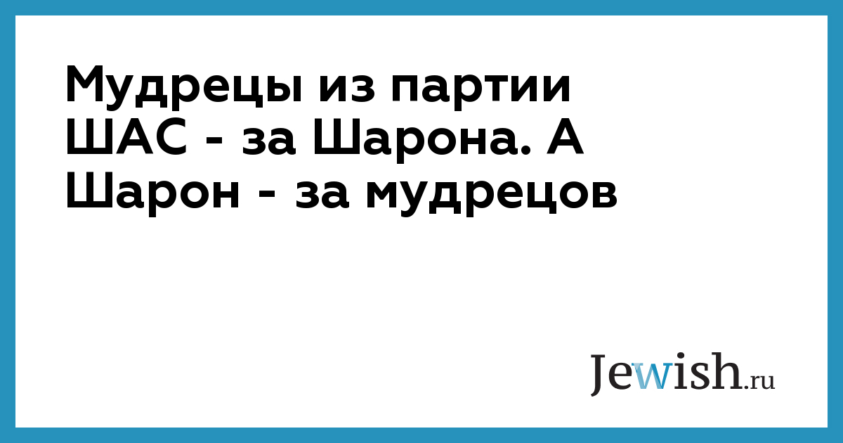 Мудрецы из партии ШАС — за Шарона. А Шарон — за мудрецов