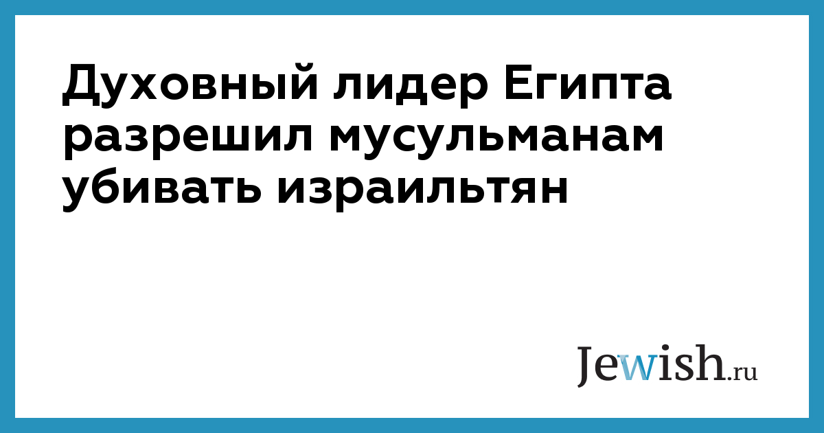Духовный лидер Египта разрешил мусульманам убивать израильтян