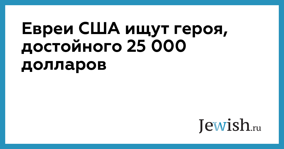 Евреи США ищут героя, достойного 25 000 долларов
