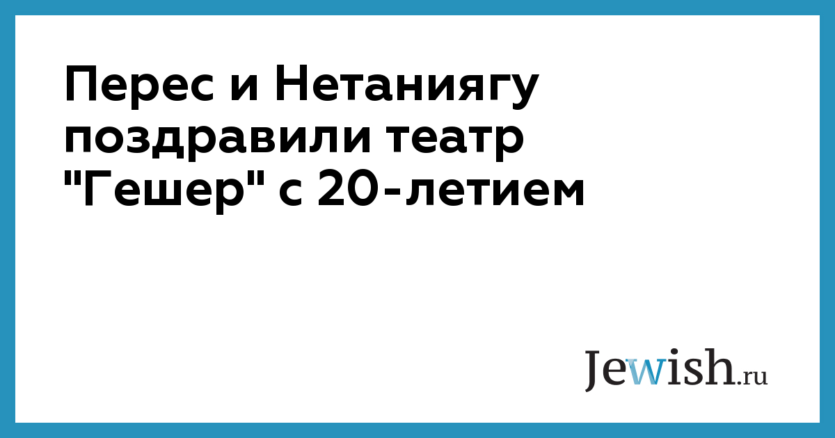 Перес и Нетаниягу поздравили театр "Гешер" с 20-летием