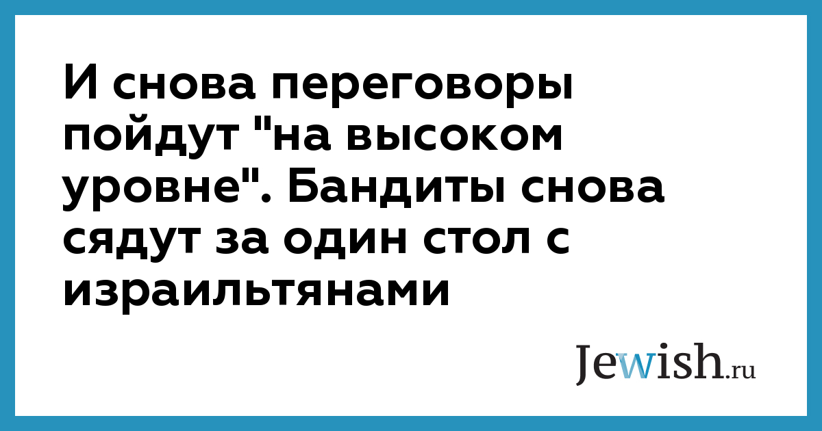И снова переговоры пойдут "на высоком уровне". Бандиты снова сядут за один стол с израильтянами