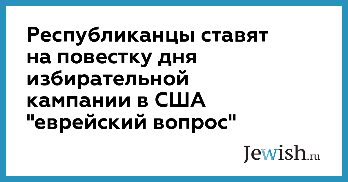 Республиканцы ставят на повестку дня избирательной кампании в США "еврейский вопрос"