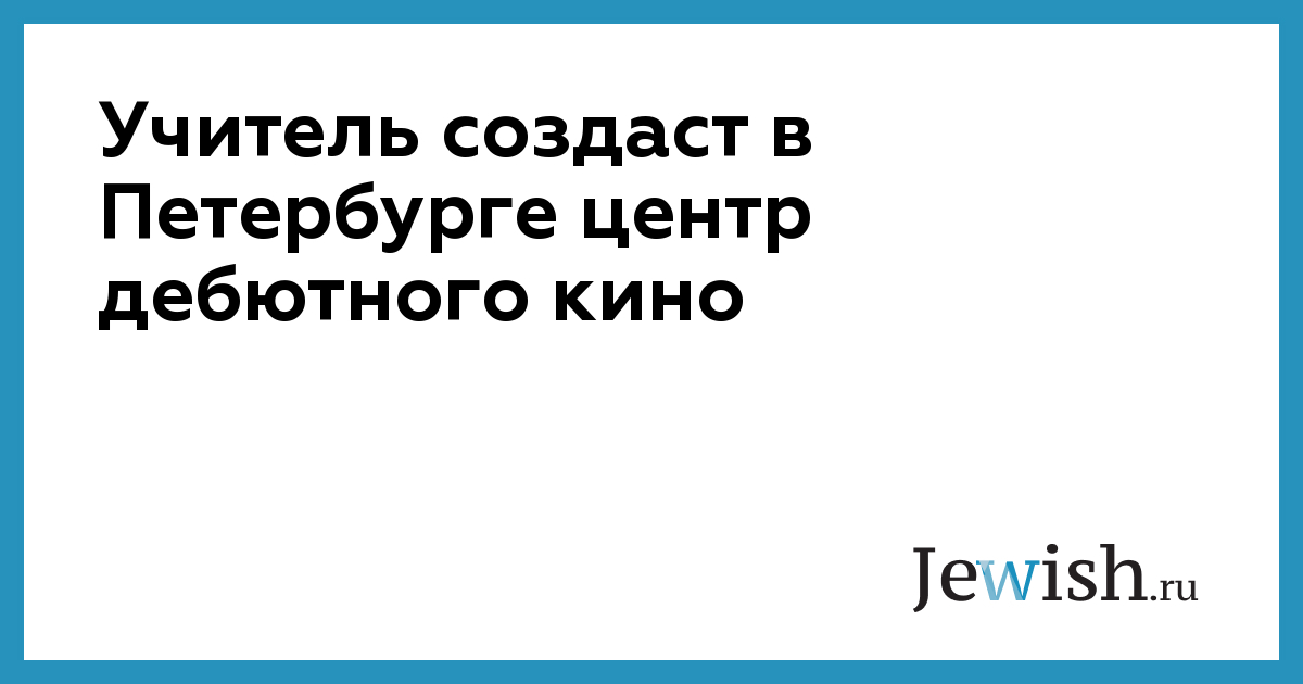 Учитель создаст в Петербурге центр дебютного кино