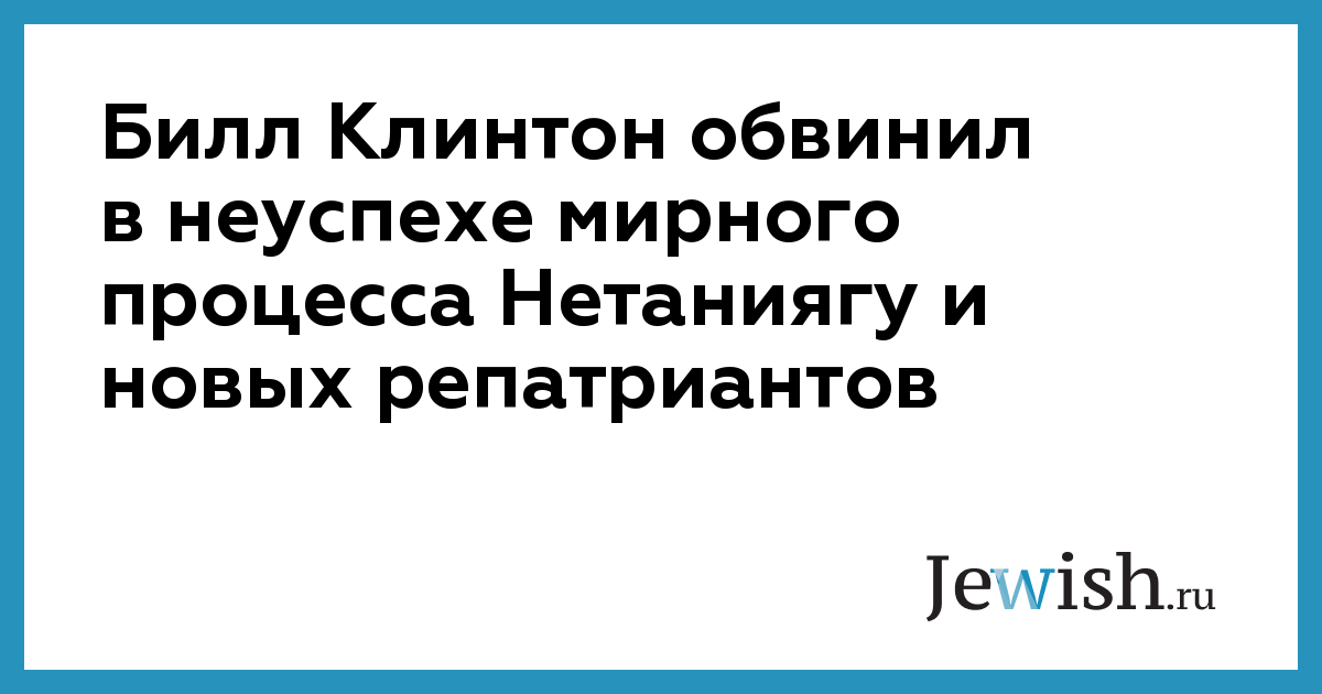Билл Клинтон обвинил в неуспехе мирного процесса Нетаниягу и новых репатриантов