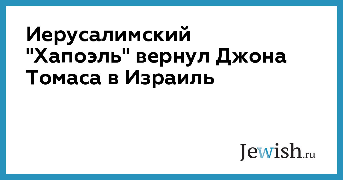 Иерусалимский "Хапоэль" вернул Джона Томаса в Израиль