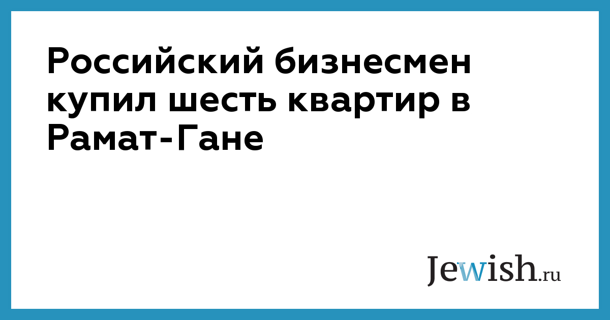 Российский бизнесмен купил шесть квартир в Рамат-Гане