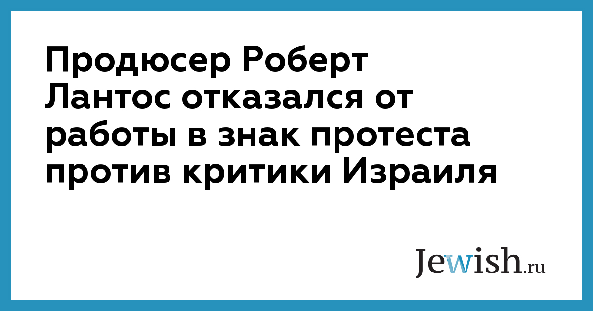 Продюсер Роберт Лантос отказался от работы в знак протеста против критики Израиля