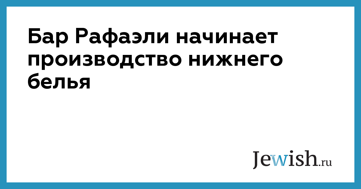 Бар Рафаэли начинает производство нижнего белья