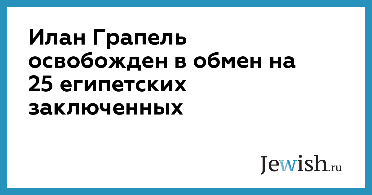 Напомним, что Илан Грапель был арестован в Каире в июне текущего года и который более четырех месяцев провел в египетской тюрьме по обвинению в шпионаже и подстрекательстве к антиправительственным беспорядкам. Он был освобожден в рамках сделки с Египтом в обмен на 25 египетских граждан, включая троих несовершеннолетних: все они отбывали в израильских тюрьмах наказание за различные правонарушения.