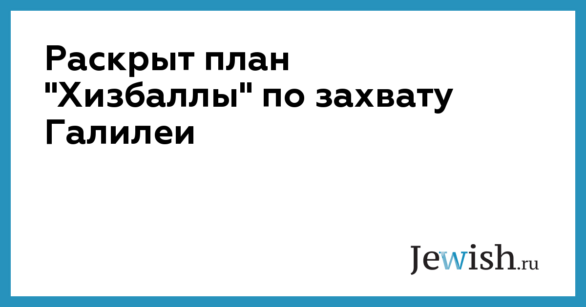 Раскрыт план "Хизбаллы" по захвату Галилеи