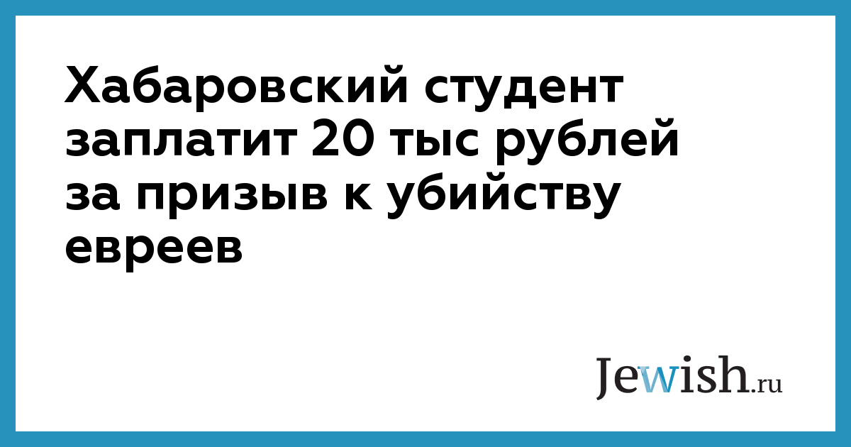 Хабаровский студент заплатит 20 тыс рублей за призыв к убийству евреев