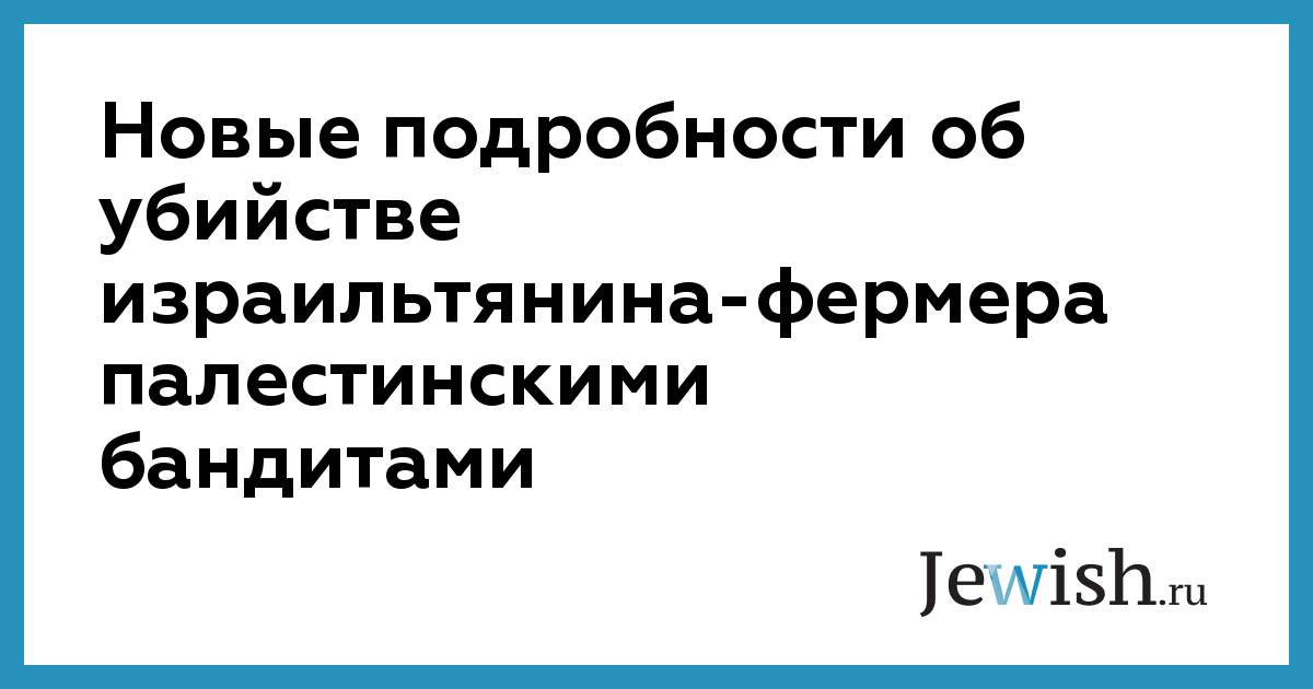 Новые подробности об убийстве израильтянина-фермера палестинскими бандитами