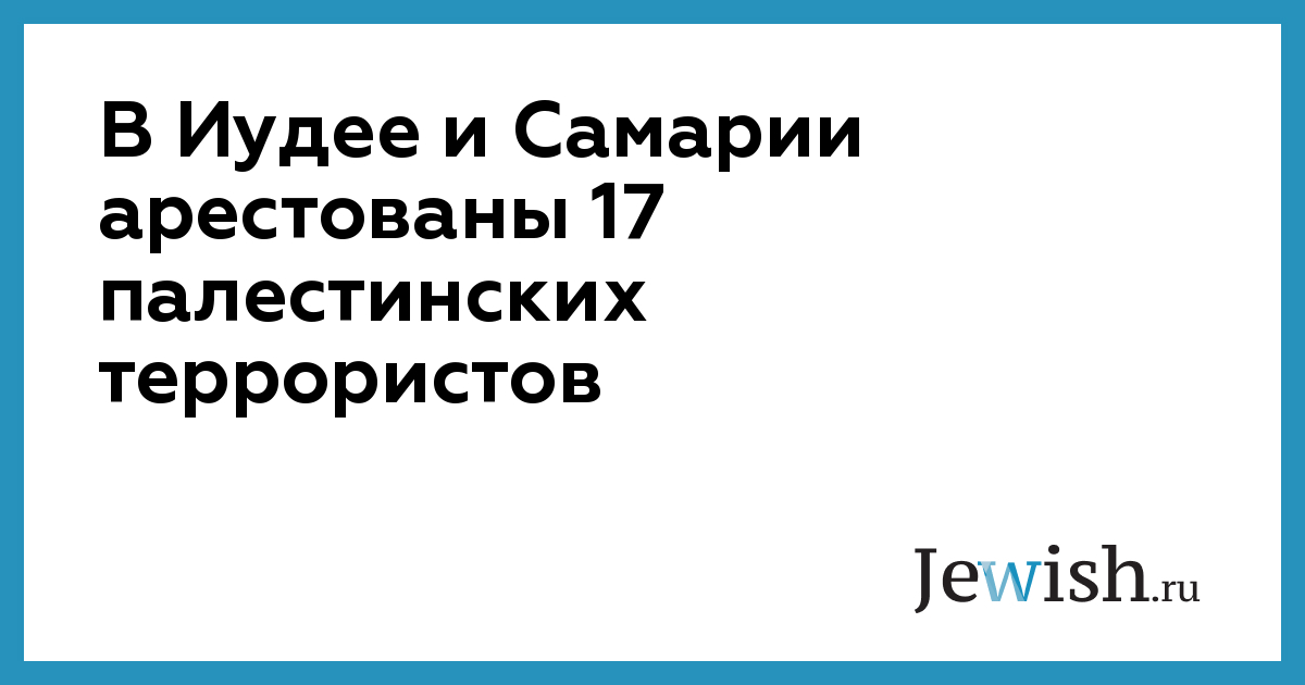 В Иудее и Самарии арестованы 17 палестинских террористов