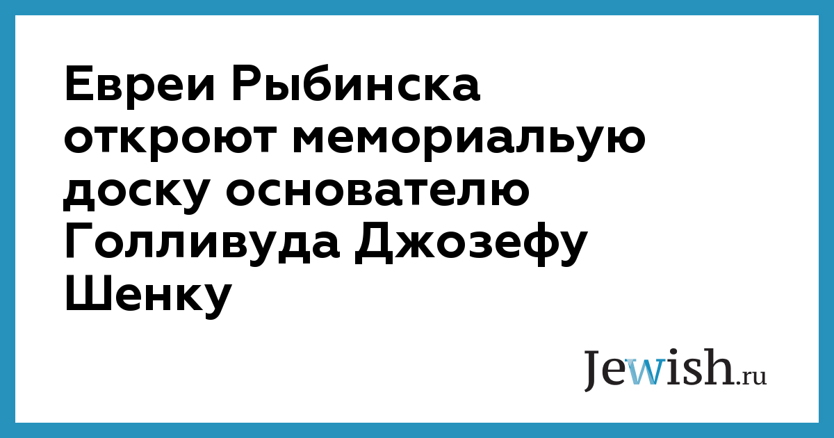 Евреи Рыбинска откроют мемориальую доску основателю Голливуда Джозефу Шенку