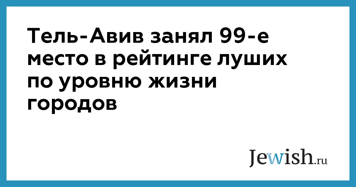 Тель-Авив занял 99-е место в рейтинге луших по уровню жизни городов