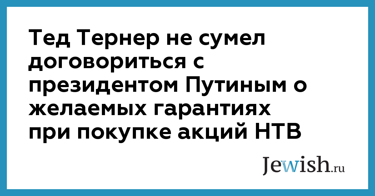 Тед Тернер не сумел договориться с президентом Путиным о желаемых гарантиях при покупке акций НТВ