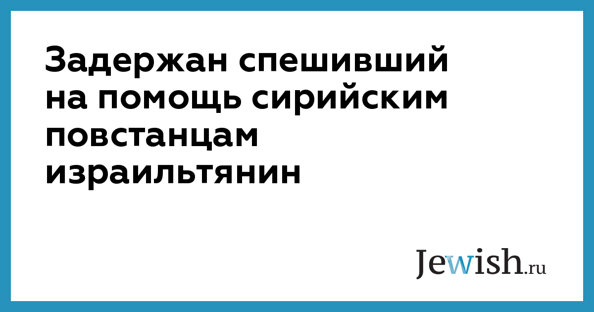 Задержан спешивший на помощь сирийским повстанцам израильтянин